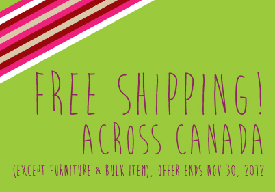 Free shipping across Canada. Except furniture or bulk items. Promotion ends Nov 30, 2012.